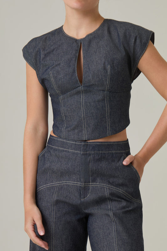 Sold outTHE JACKIE DENIM TOP (EMBELLISHED)