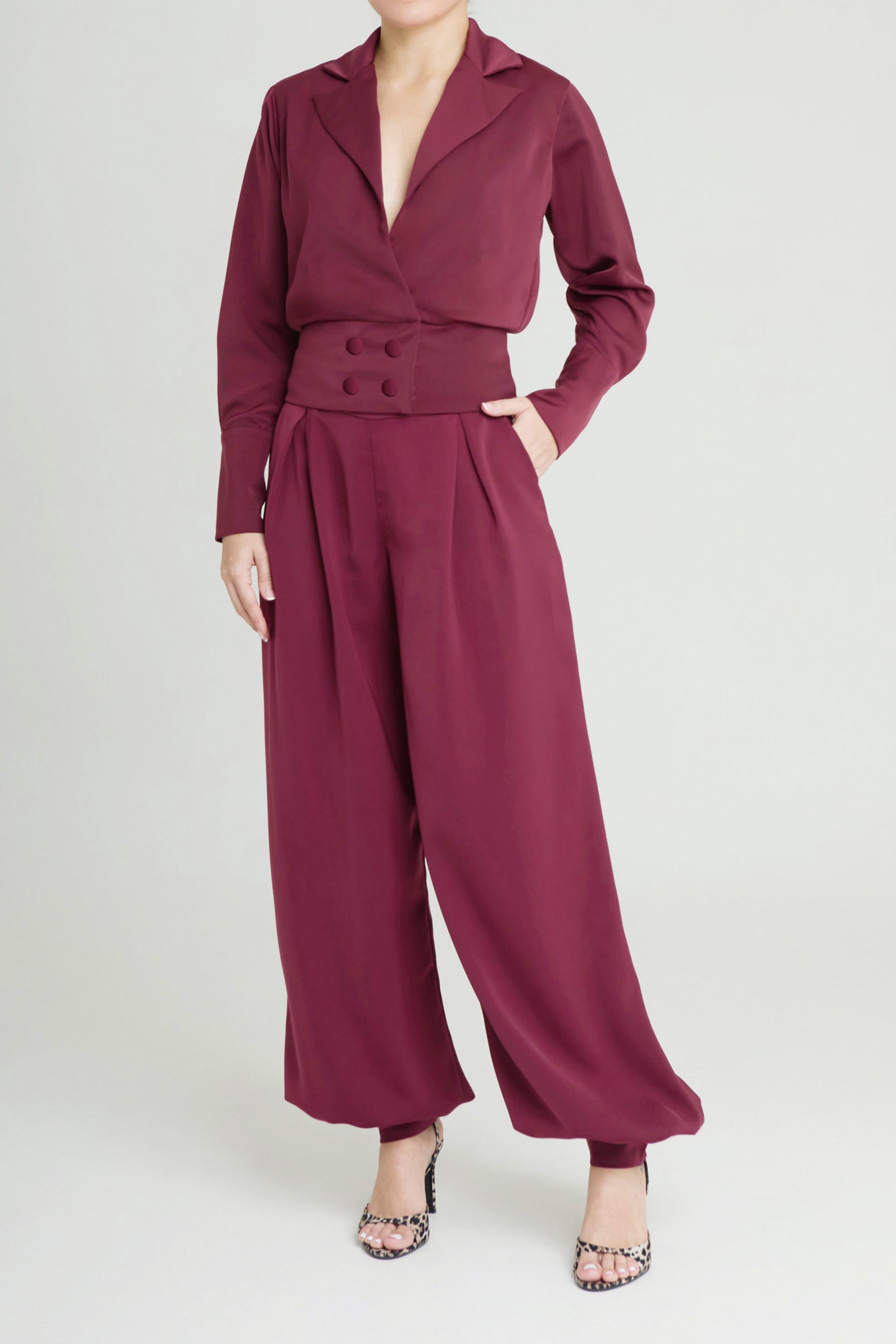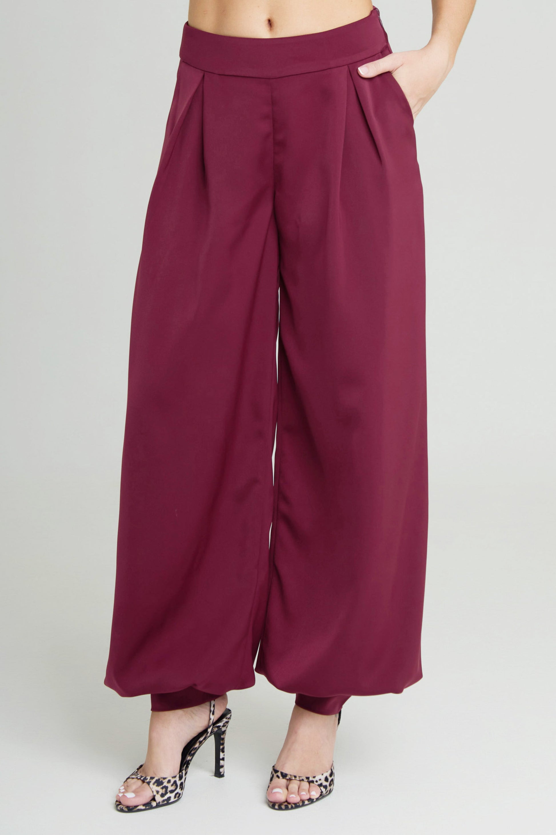 Elevate your style with these wide-legged, high-waisted aladdin type pants. Featuring flattering front pleats and a sleek, flowy fabric, they offer a chic sophisticated look perfect for any occasion.